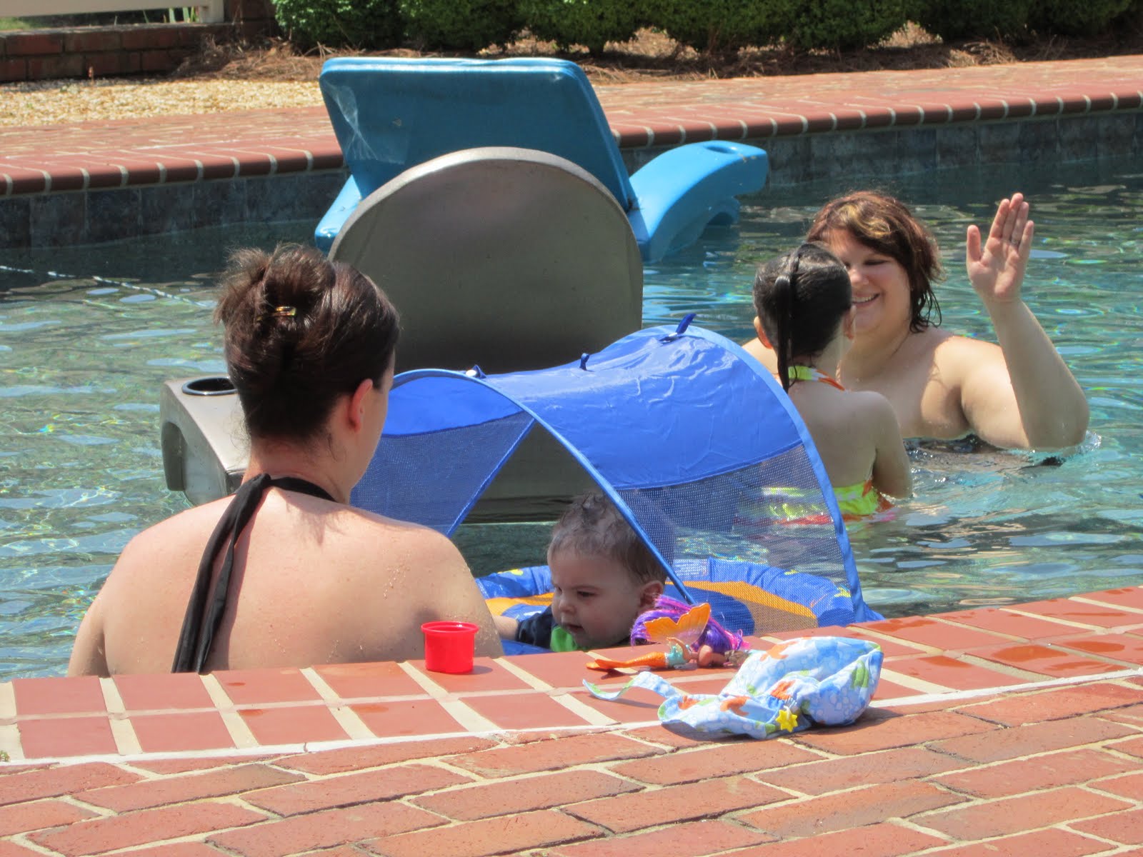 And, just for fun, here's one more picture... she was actually reaching up for the camera to look at a picture I'd just taken, and I accidentally snapped one more, but it looks like Katie Anne's protecting SJ from the paparazzi. "No more pictures!"